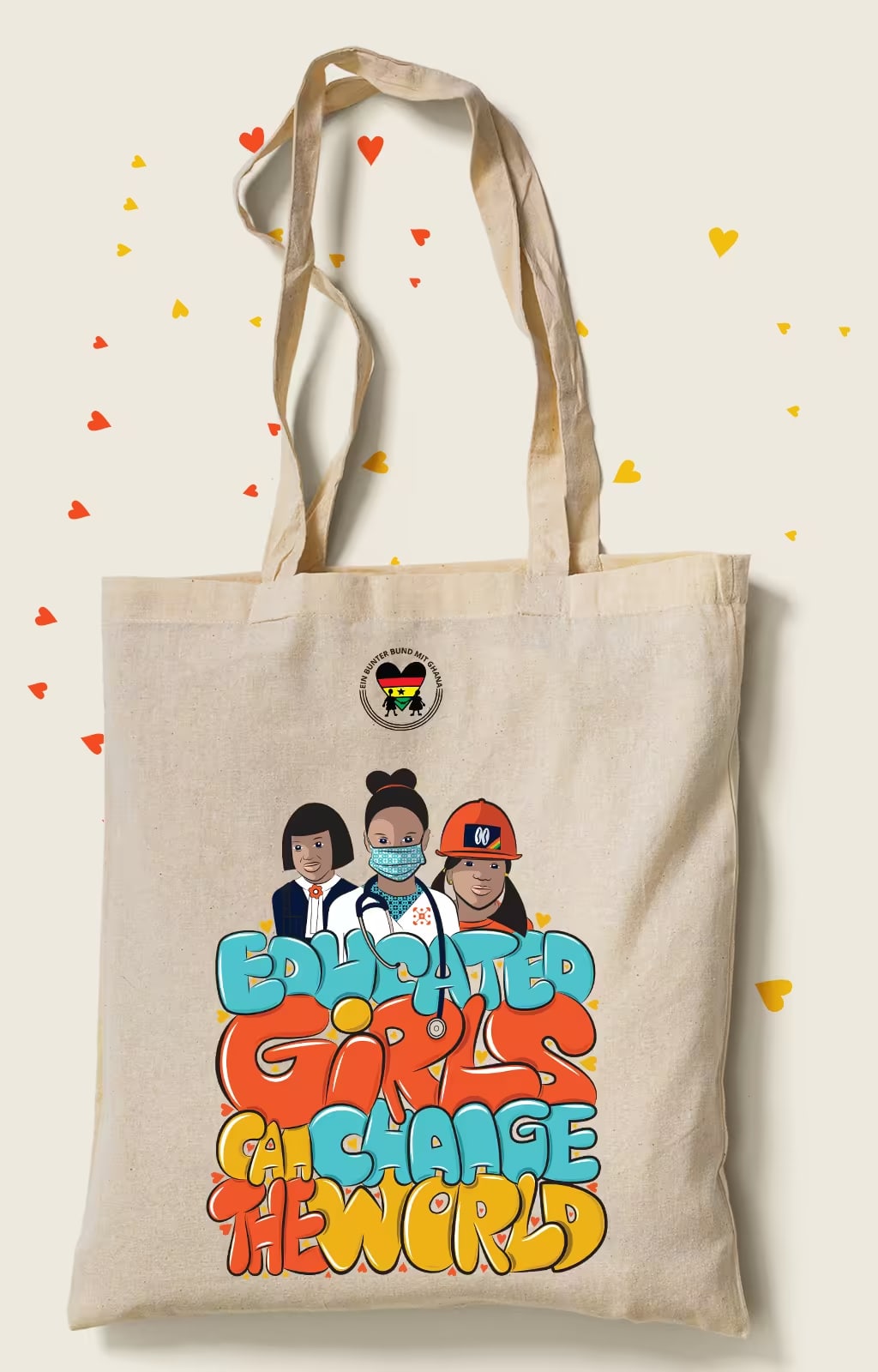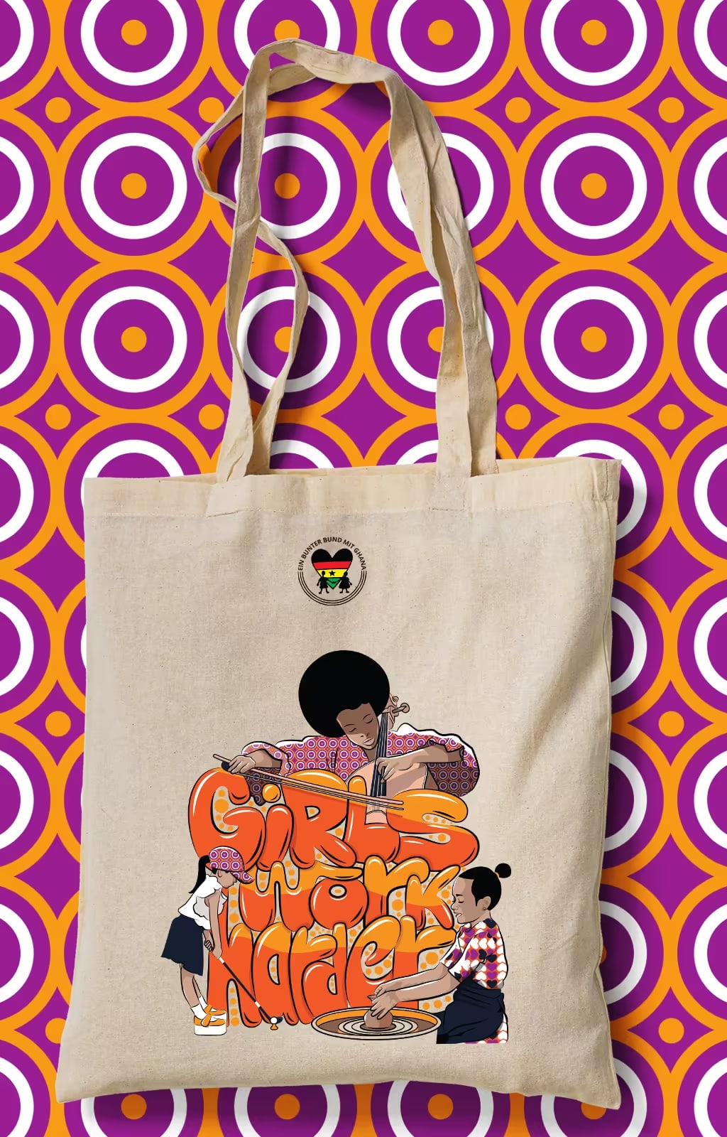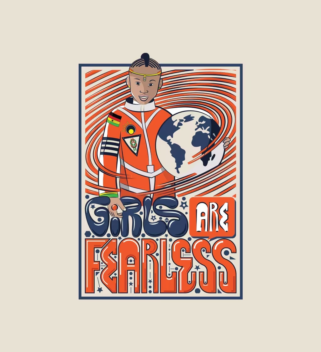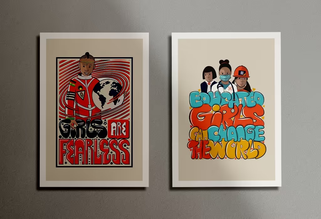 Ein Bunter Bund Mit Ghana entrusted me with a meaningful mission: to craft illustrations, type, and compelling copy that inspire people to champion the empowerment of girls in our society. The resulting artwork is not just a creative endeavour; it’s a tool for change. The prints are a symbol of unity and commitment, a means to raise crucial funds that support the NGO in its mission to advance education in Ghana.